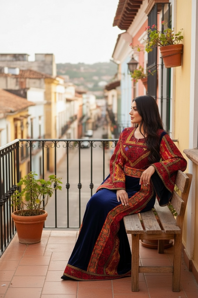 • Blue Silk Velvet Elegant Embroidered  Fashionable