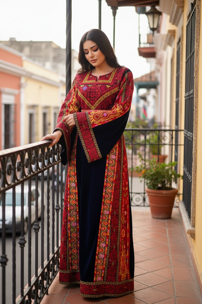 Blue Velvet embellished with intricate Qasab (metallic) embroidery.