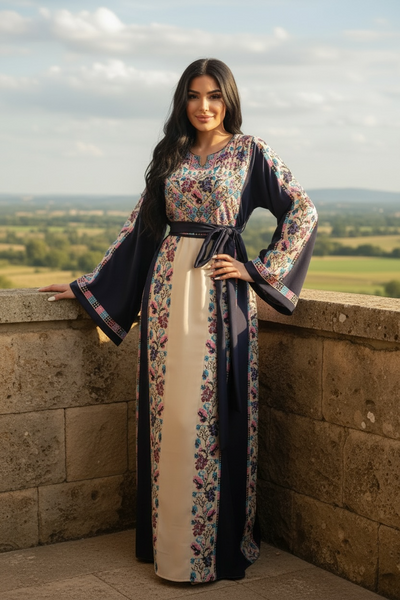 Eid collection Blooming Elegant Dress Embroidered Palestinian Thobe