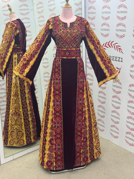 Maroon Silk Velvet Luxurious Golden Kasab Embroidery