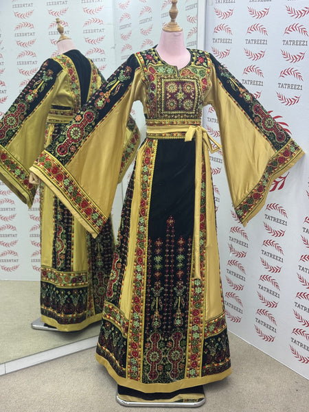 Velvet Black Palestinian Tatreez Thobe Heritage Elegance Embroidered Dress