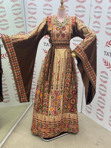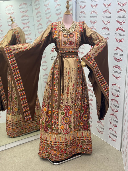 Chocolate and Caramel Embroidery Traditional Palestinian Thobe